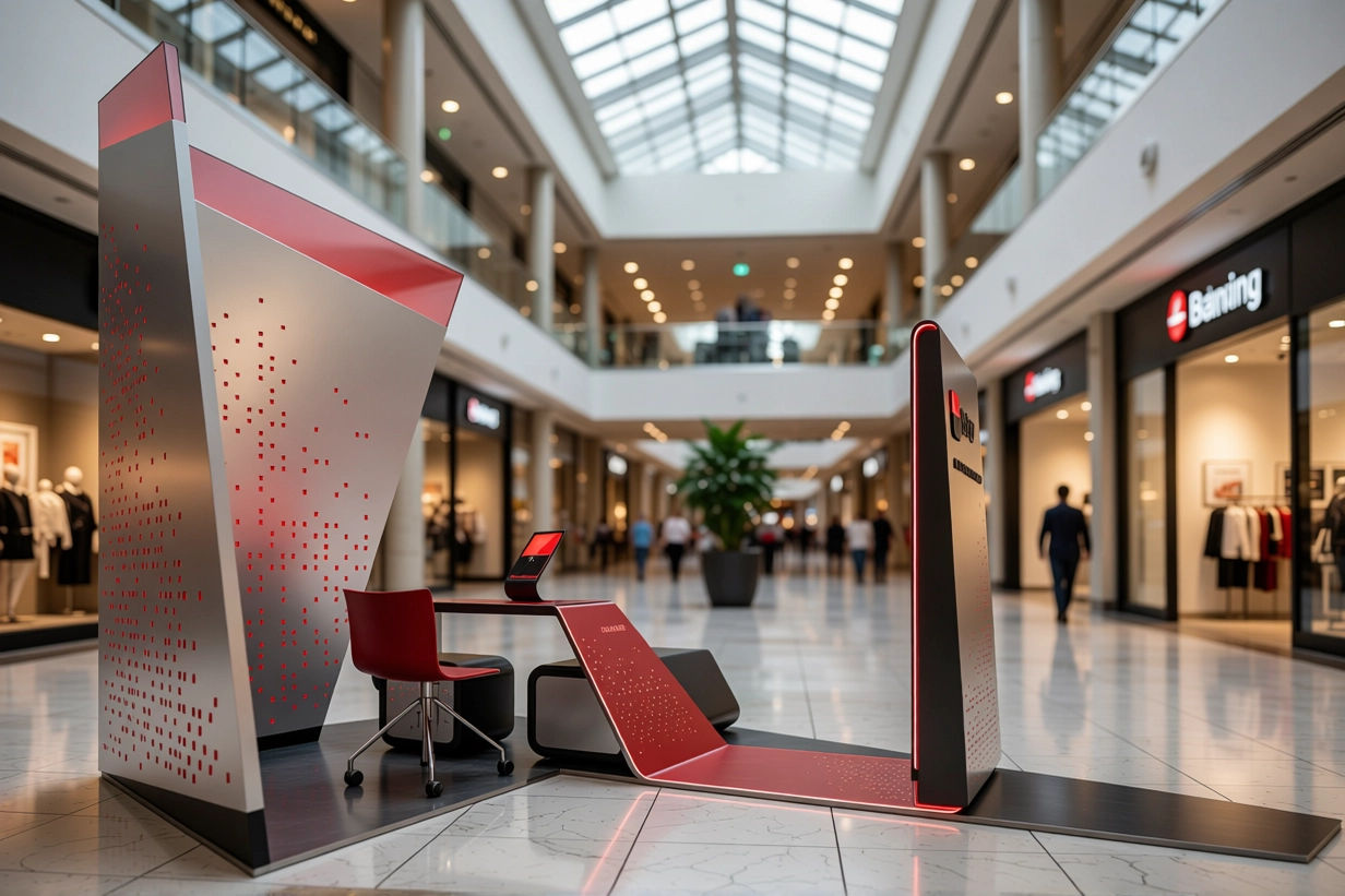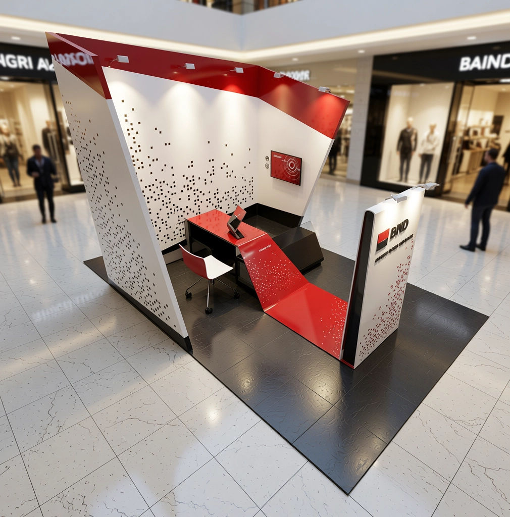 The client presented a brief for 3 different items, a small stand, a pop-up store sized kiosk and an exhibition pavilion for larger events, like gallery events, mall and commercial centers. The design concept should speak of a high-tech experience, appealing to both old and young , blue collar and white collar clients. It should be modular, easy to assemble and disassemble and carry to any given location.