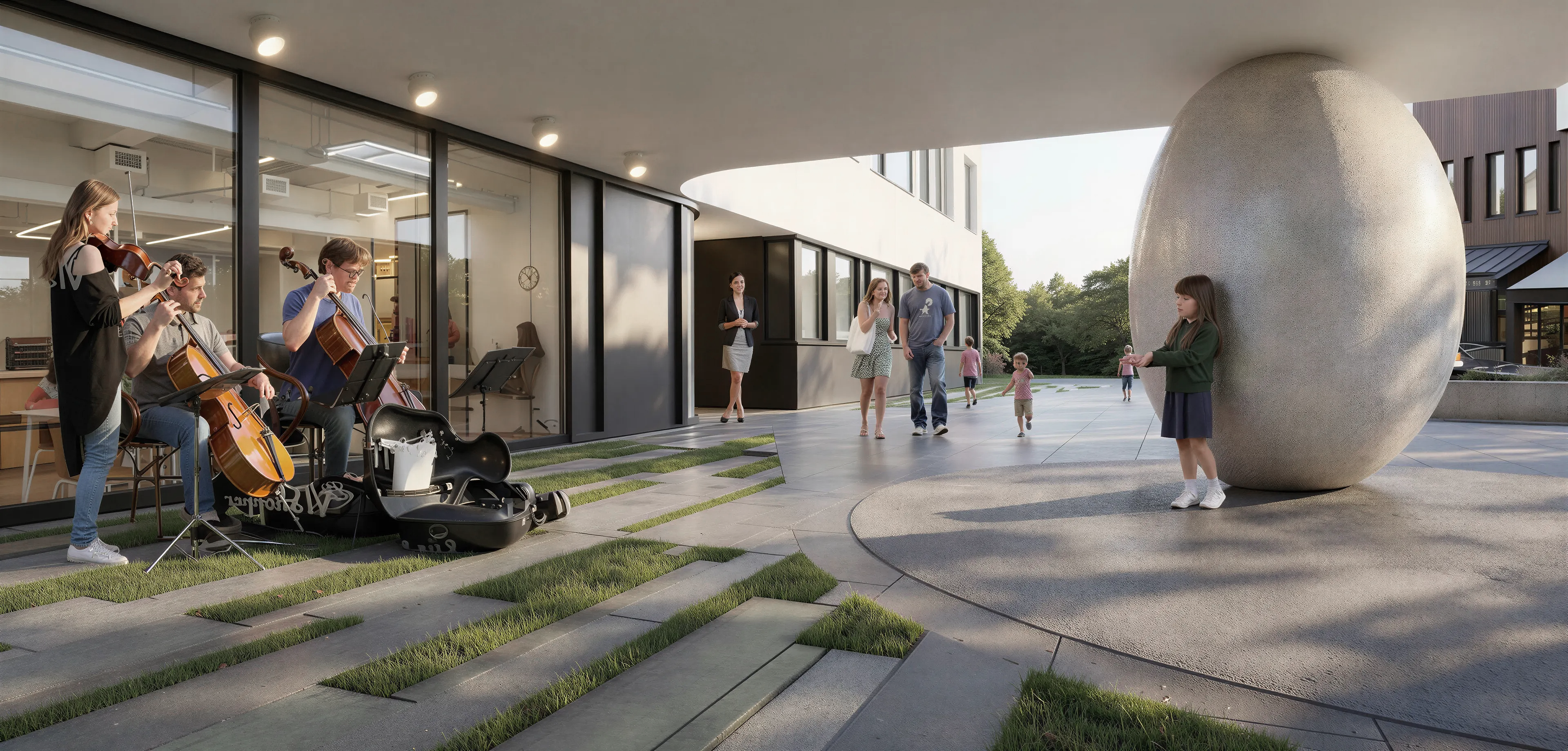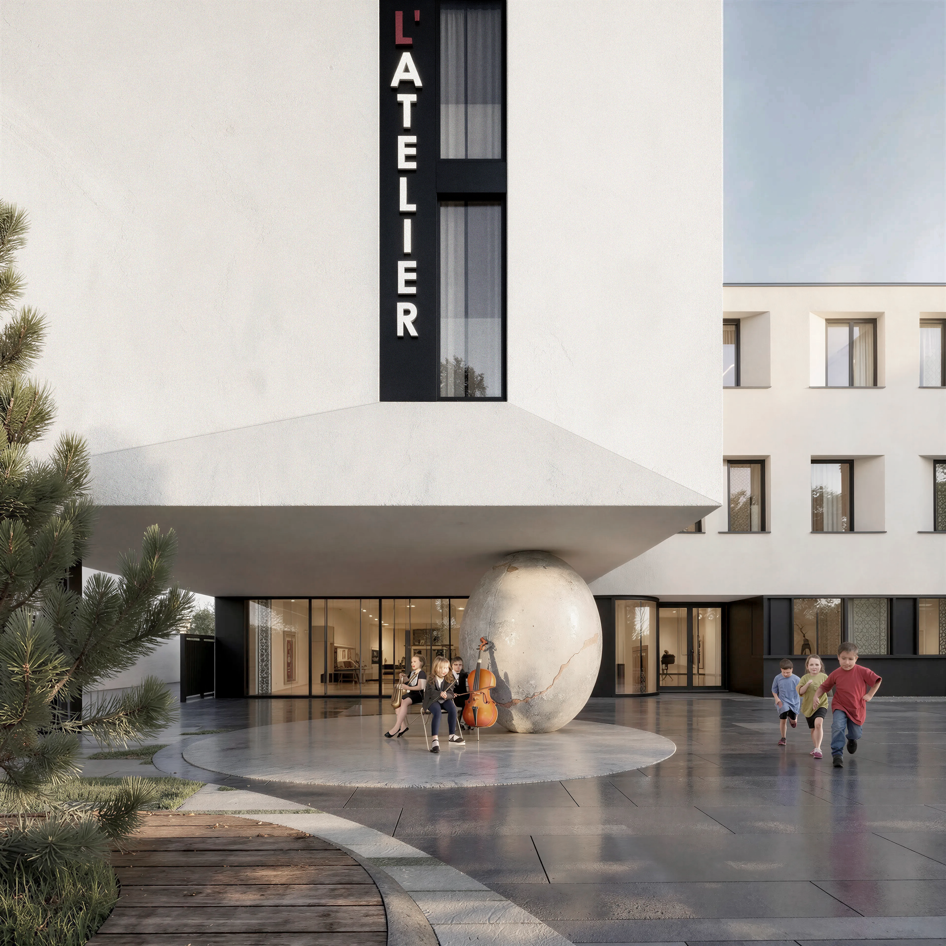Building upon the symbolic potency of the ovoid in Brancusi’s sculptural language, the egg-like form effortlessly sustaining the cantilevered upper floors of L’ ATELIER building can be further interpreted as an emblem of raw potential—an unshaped essence awaiting definition. In the context of education and childhood development, Brancusi’s ovoid sculptures take on an added layer of significance: they become metaphors for the formative state of the young mind, malleable and open, yet containing the innate blueprint of growth and transformation. Just as Brancusi sought to strip away the superfluous to reveal the purity of form, the educational process can be seen as a shaping of raw material—children—toward their fullest expression, ideally without distorting the inner nature they already possess.