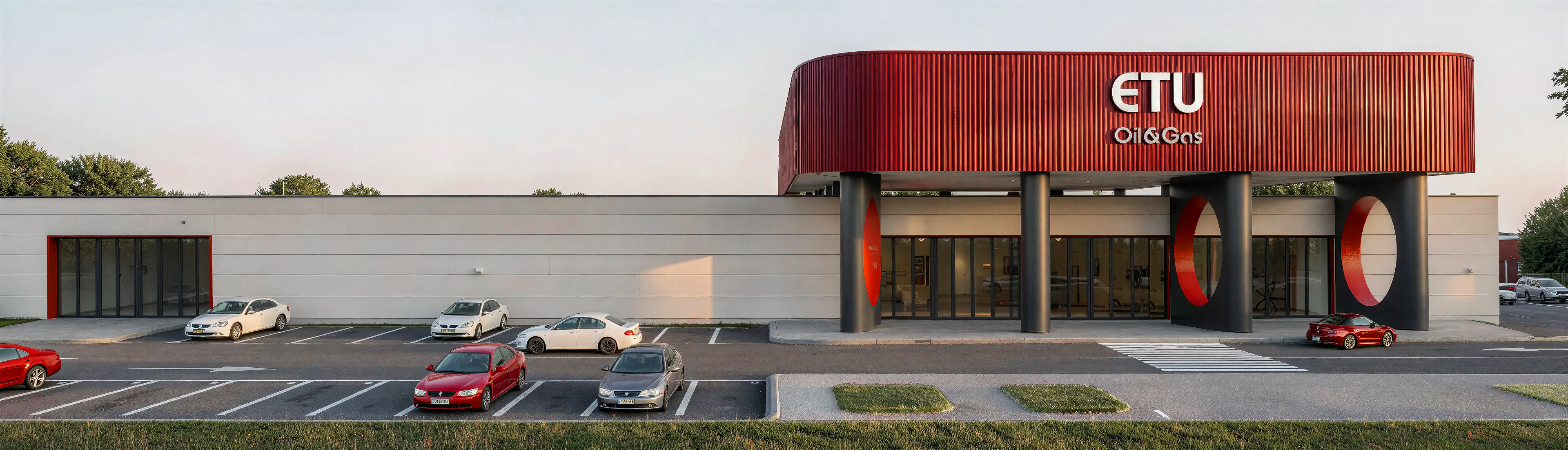 Volumetria fluidă, colțurile rotunjite, liniile aerodinamice și canopy-urile cu profil orizontal accentuat creează imaginea unei clădiri tehnologice, dinamice și ușor recognoscibile.